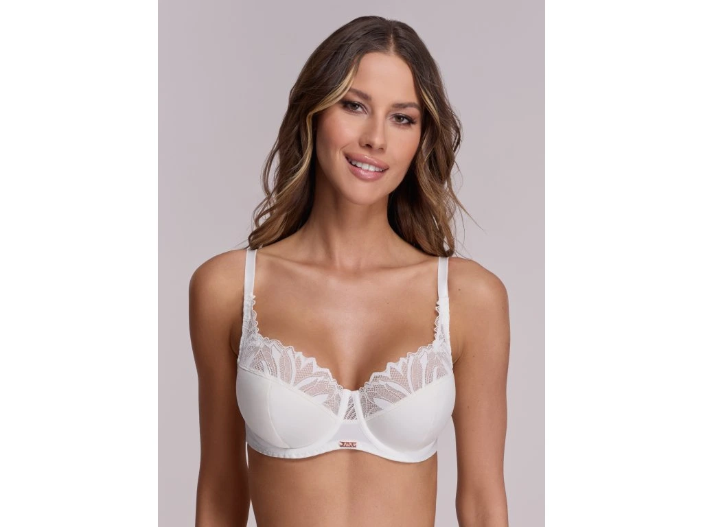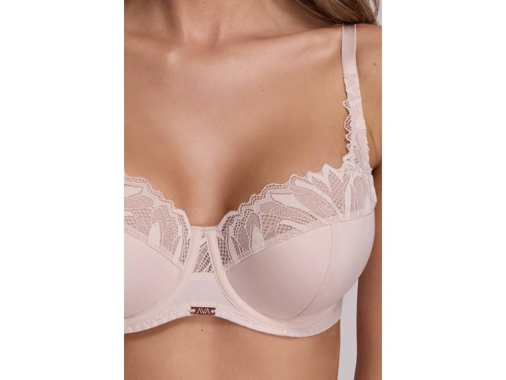 Podprsenka AV 2105 Maxi ● polovyztužené košíčky podle nejprodávanějšího designu K-1030 ● ve spodních částech podšitá měkkou pěnou ● zvenku potažená elastickým úpletem ● horní část košíčků z hustě tkané květinové krajky ● krajka plynule přizpůsobuje tvar prsou a postupně stoupá po ramínkách ● nosník a záda jsou zvýrazněny kovovou destičkou s logem ● bez boční kostice ● neodepínatelná ramínka, šířka upravena na míru ● nastavitelná ramínka - kovová, antialergický regulátor ● zapínání: dvouřadé/třířadé, třístupňový háček