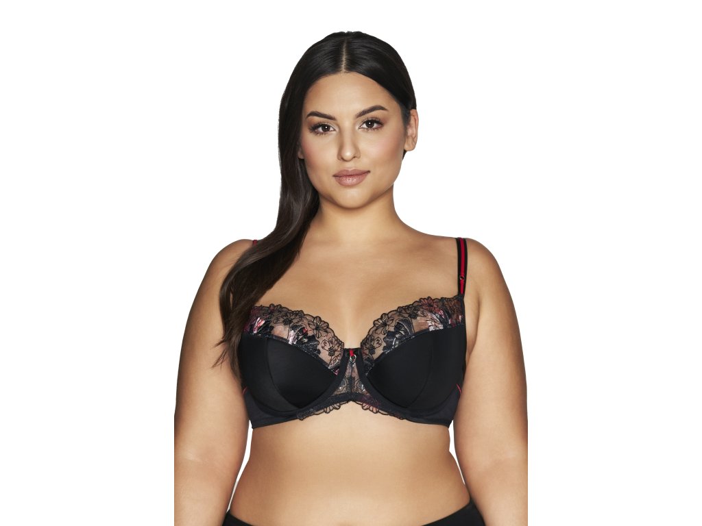 Poloměkká podprsenka 2121 Černá ● vychází z nejprodávanějšího designu K-1030 ● poloměkká podprsenka s kosticemi, bez bočního kosticování ● polovyztužené košíčky se postarají o dokonalé umístění, tvarování a podporu prsou ● třídílné košíčky z černého mikrovlákna a vyšívaného úpletu na horní straně ● červená ramínka s lesklým kolečkem, černou mašlí se zlatým kroužkem ve středovém bodě ● dvoudílná záda z pružného úpletu a dvojitého tylu, spojená plochým barevným švem ● ramínka - nastavitelná, neodepínatelná, šířka přizpůsobená velikosti ● zapínání - dvojitý/trojitý háček s očkem