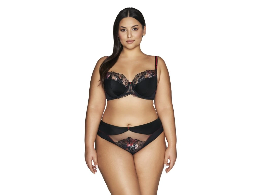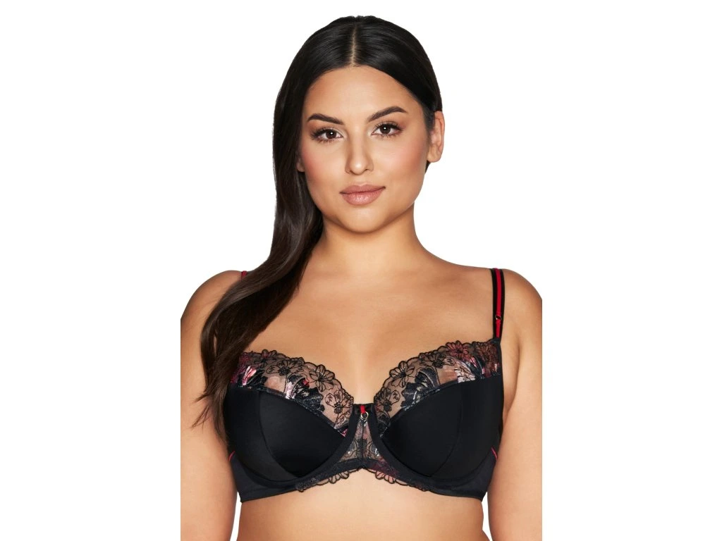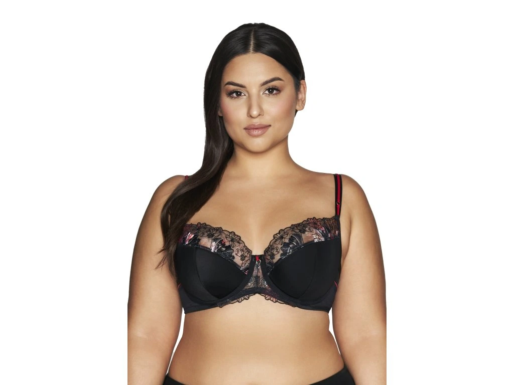 Polotuhá podprsenka 2121 Černá ● vychází z nejprodávanějšího designu K-1030 ● polotuhý typ s kosticemi, bez bočních kostic ● polovyztužené košíčky zajišťují perfektní umístění, tvarování a oporu prsou ● třídílné košíčky z černého mikrovlákna a vyšívaného úpletu v horní části ● červené proužky s lesklým kroužkem, umístěné na ramínkách, přitahují pozornost ● černá mašle se zlatým kroužkem uprostřed ● dvoudílná záda z elastického úpletu a dvojitého tylu, spojená plochým barevným švem ● ramínka – nastavitelná, neodepínatelná, šířka se přizpůsobí velikosti ● zapínání – dvouřadé/třířadé, třípolohové zapínání na háček a očko