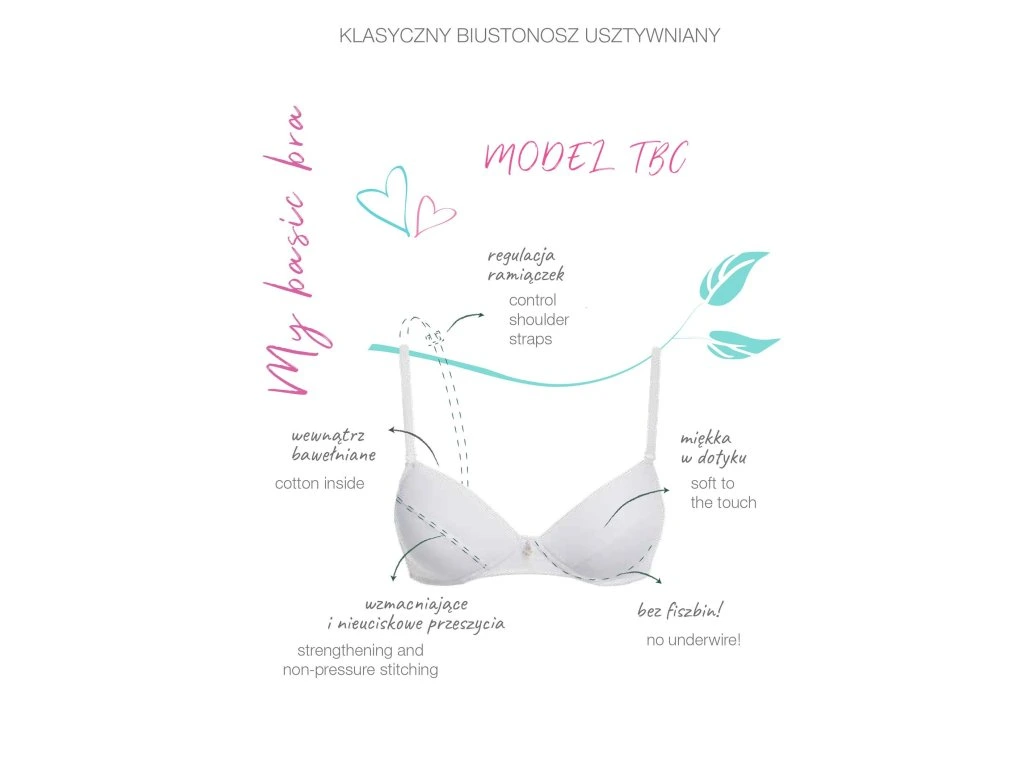 ● usztywniane miseczki, wzmocnione gąbką i przeszyciami zamiast fiszbin