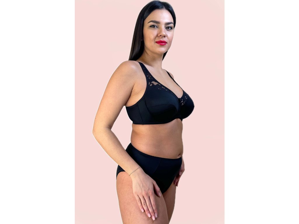 Podprsenka má vyšší střed ideální pro velká prsa, ramínka širší, obšitá paspulkou, aby se nezařezávaly do ramen. Košíček se skládá ze tří dílů, aby se perfektně přizpůsobil. Spodní dva díly jsou pošité. Díl, který kopíruje dekolt je z elastické krajky.