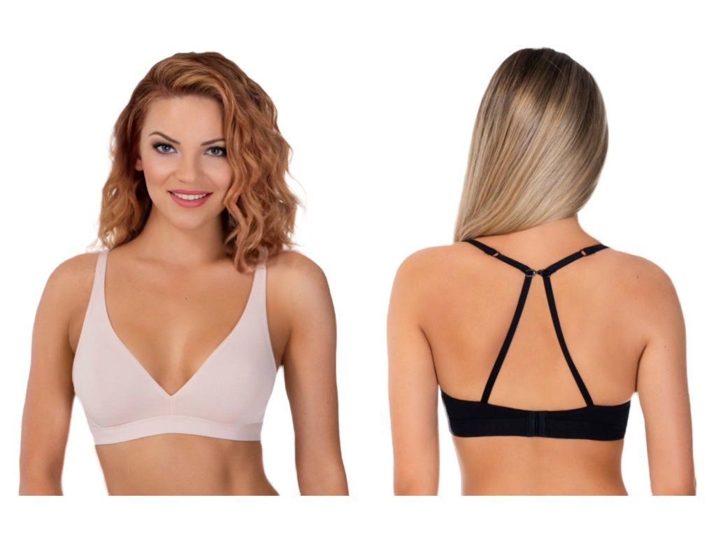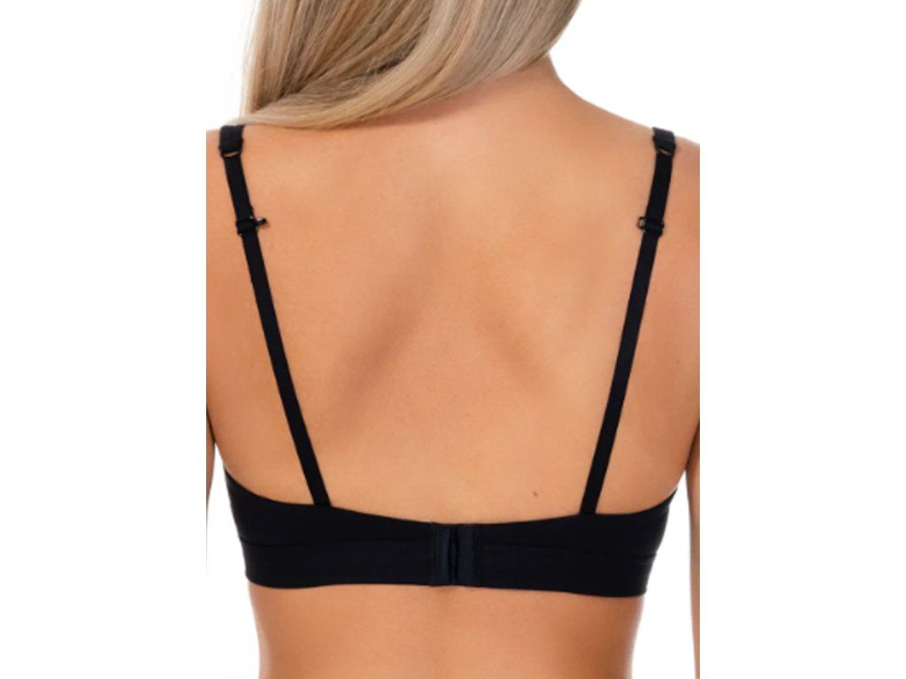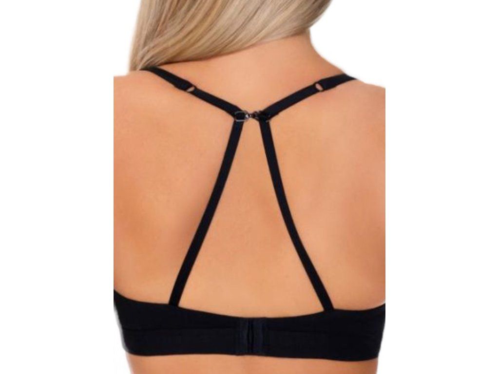 J-háček zabraňuje sklouzávání ramenních popruhů a skrývá ramínka pod sportovními zády