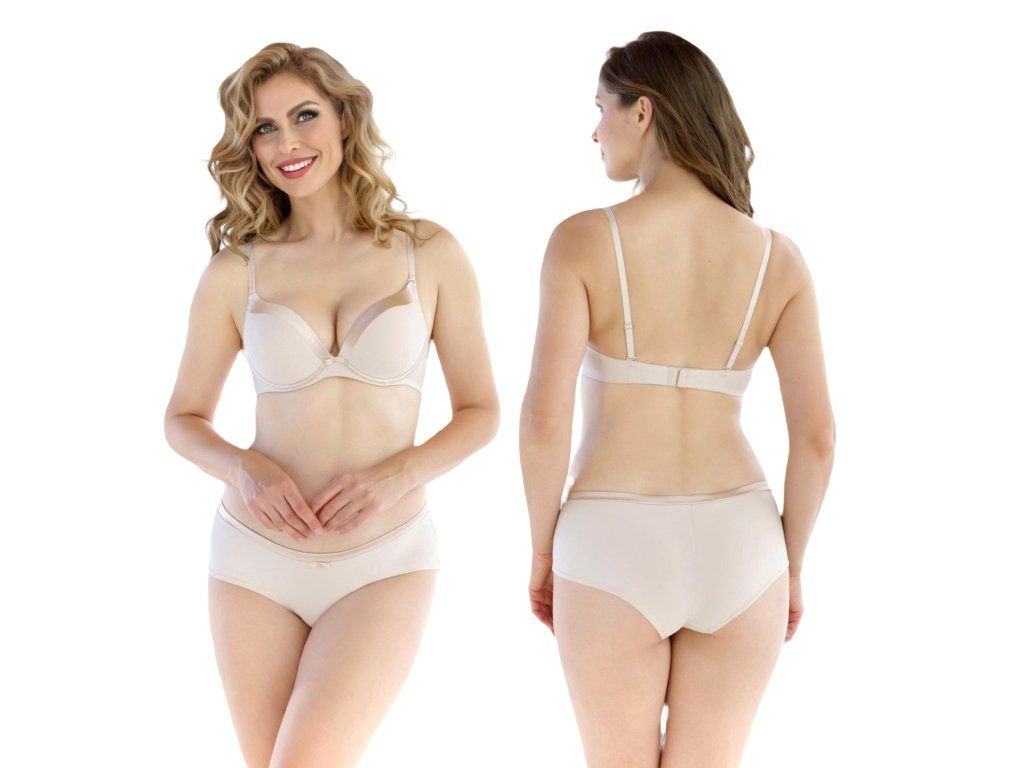 99580 Push-up podprsenka s kosticemi a saténovým lemováním Tvarované košíčky s gelovou výplní zasazené do sedýlka