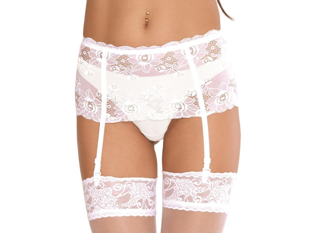 Podvazkový pás Babette 945 ● nápadný vysoký podvazkový pás ● vyrobený výhradně ze široké krajky ● nastavitelné popruhy ● modeluje a zdůrazňuje křivky ženské postavy