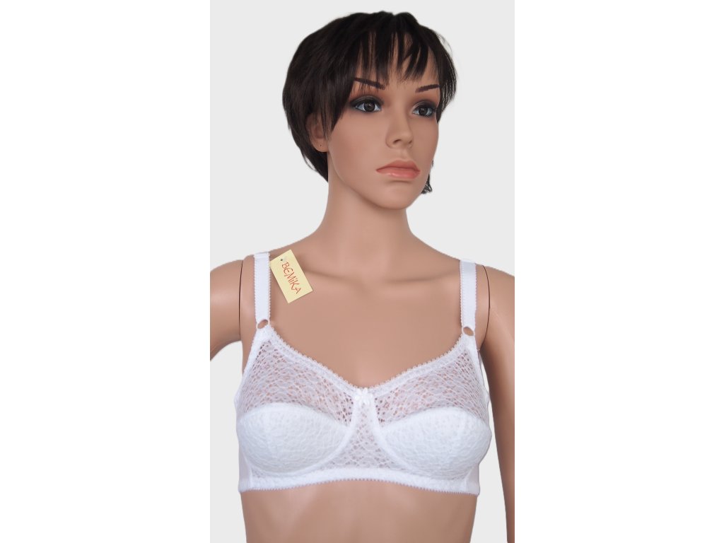 Polovyztužená podprsenka ● z vysoce kvalitních tkanin ● bez kostic ● široká nezapínací ramínka s nastavením ● dvouřadé zapínání