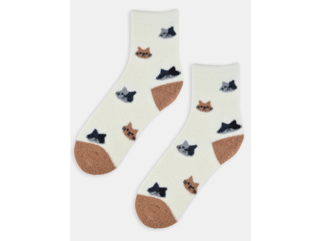 Ponožky SP003 Fluffy Cat ● jsou vyrobeny z měkké, nadýchané měkké pleteniny ● mají pohodlný, netlačící lem ● zajistí pohodlí při nošení ● zdobí je okouzlující vzor ● skvělé pro chladné, podzimní a zimní dny ● ideální nápad na dárek