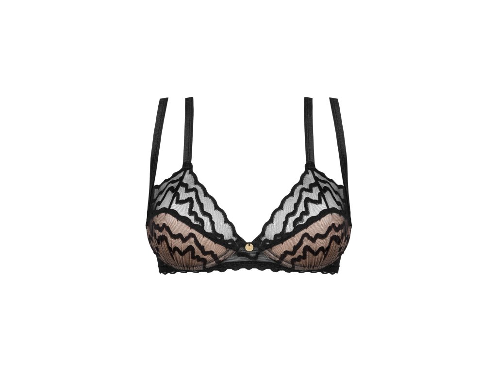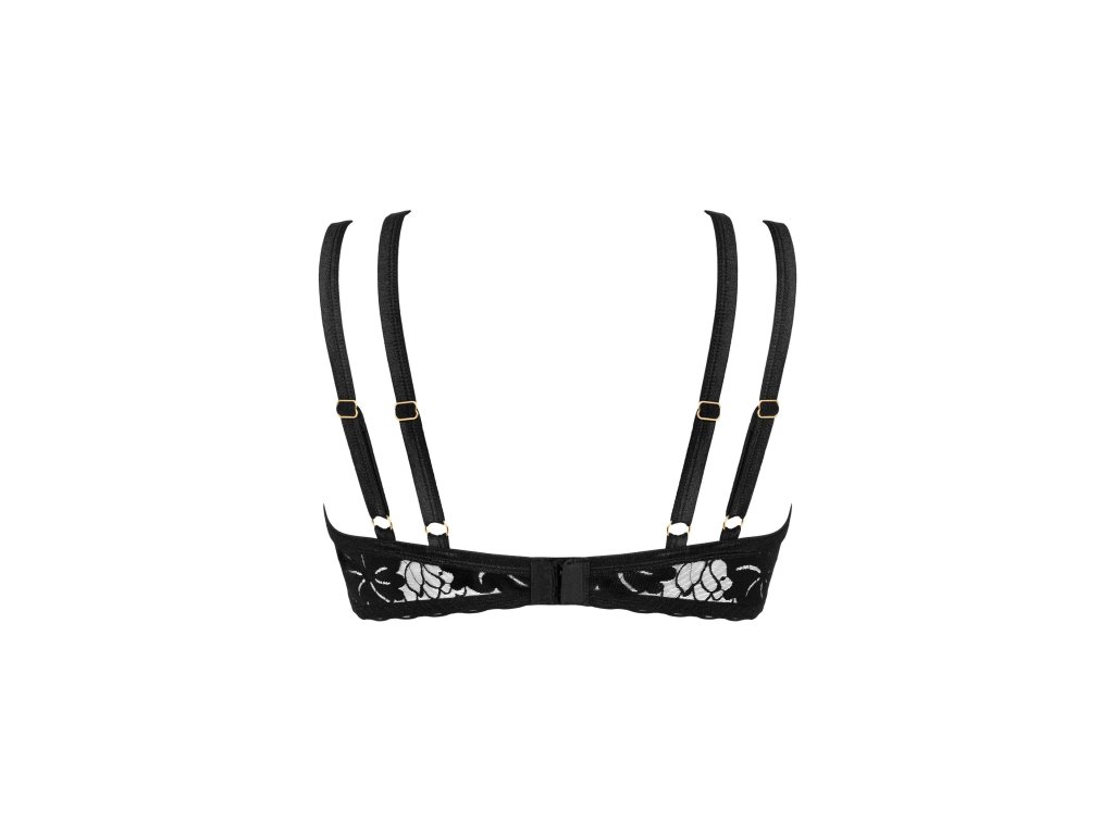 Elegantní černá podprsenka Arienna. Jemně průhledný, na dotek příjemný materiál - svůdný a zajímavý. Vyztužené kostice - vynikající podpora poprsí. Nastavitelná dvojitá ramínka podprsenky - moderní komfort při nošení. Pohodlné zapínání na zádech - nastavitelné. Bižuterní přívěsek mezi prsy - dodává šarm