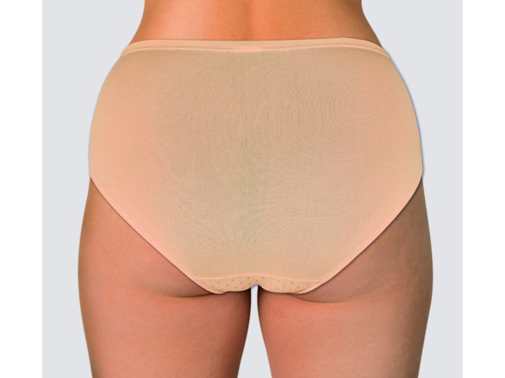 Dámské kalhotky vysokého střihu. Kalhotky jsou vyrobeny z kvalitní elastické bavlny s příměsí elastanu pro větší pružnost tkaniny a větší pohodlí. Na předním díle je hezký žakár a zadní díl je hladký. V pase a kolem nohaviček je zašitá pruženka. Bavlněný klínek.