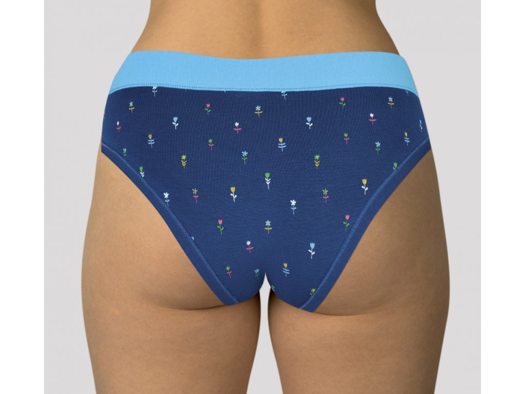 Dámské kalhotky sníženého střihu. Kalhotky jsou vyrobeny z velmi kvalitní elastické bavlny s příměsí vlákna Tactel , které dodává materiálu hebkost a prodyšnost . Materiál se skvěle přizpůsobí postavě a drží stálý tvar prádla . Díky širokému lemu v pase ideálně přiléhají k tělu a jsou velmi pohodlné. Komfortní lem okolo noho zaručuje , že se kalhotky nezařezávají do stehen . Bavlněný klínek