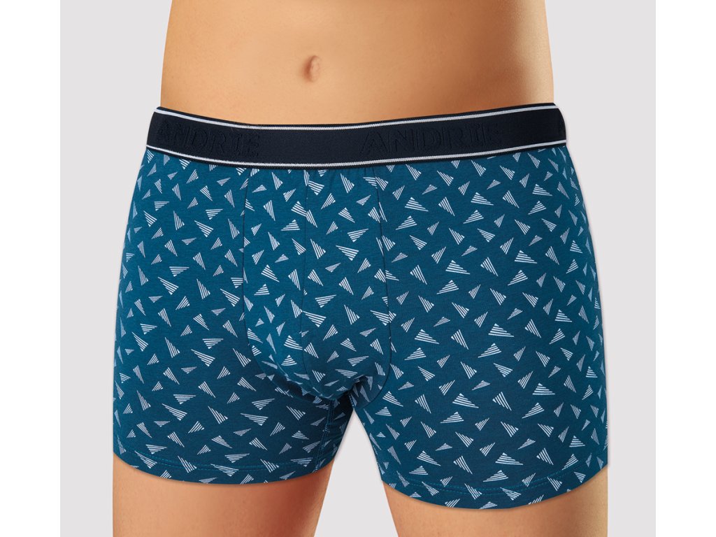 Pánské boxerky se zakrytou elastickou gumou v pase jsou vyrobeny z elastické směsi bavlny a přírodního vlákna Modal . Tkanina je krásně měkká a jemná , což přispívá k vysokému komfortu a pohodlí při nošení . Zadní díl boxerek je pro vyšší komfort bez švů .