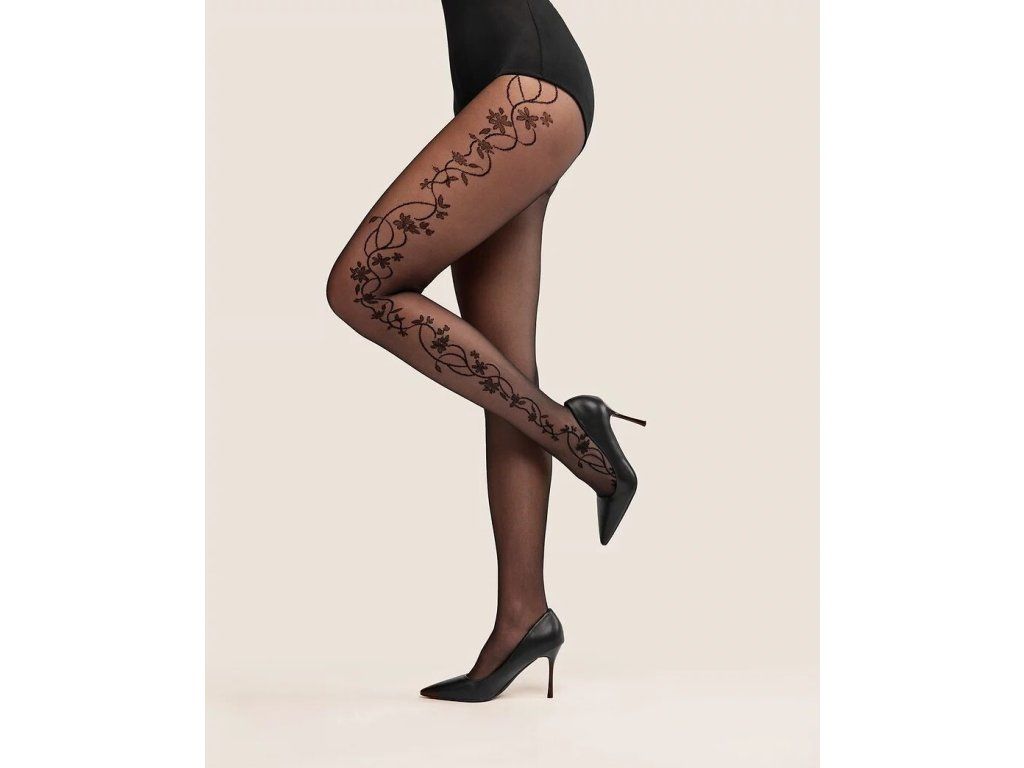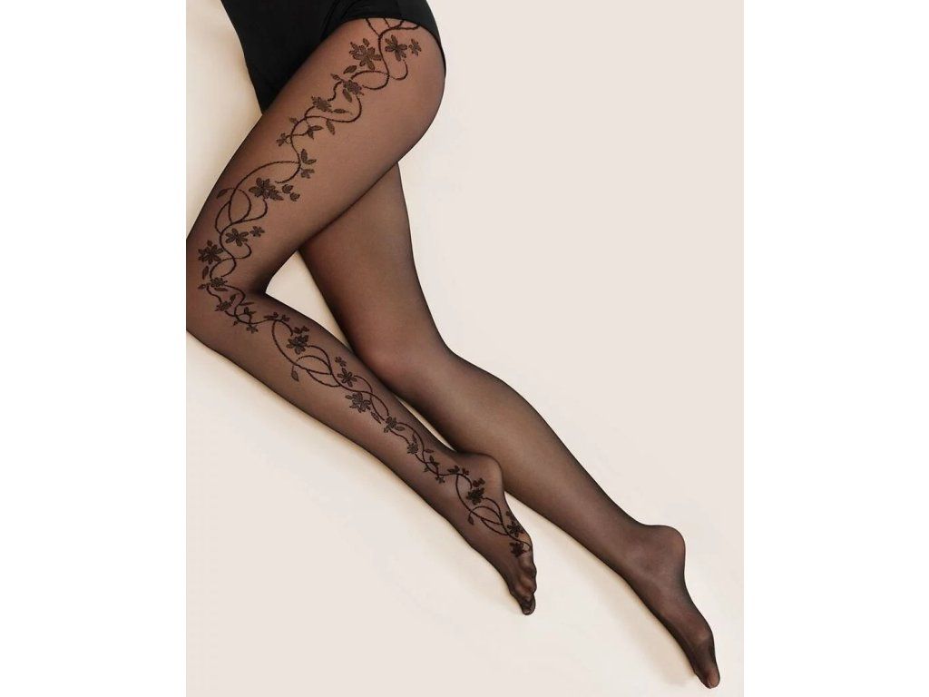 Punčocháče Flora 20 Denier ● jsou nezbytností v šatníku každé módní ženy ● květinový vzor vytváří ozdobný pruh na boku nohavice a opticky ji prodlužuje ● skvělý doplněk k outfitům na každodenní nošení i k výjimečným příležitostem ● elegantní květinový tvar, ideální pro milovnice jemných detailů ● bez samostatné části na kalhotky ● malý bavlněný klínek s plochým švem zaručuje pohodlí při nošení ● neviditelná výztuha na prstech je činí vhodnými do jakékoli obuvi ● vyrobené z elastických lycra vláken dvojitě opletených polyamidovým hedvábím ● velmi měkké a sametové na dotek ● odolné a odolné vůči tahu ● 20 Denier, jemné a elegantní