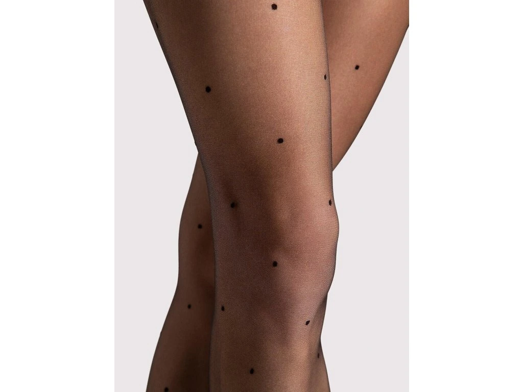 Punčocháče Pia 10 Den ● matné, silné 10 Den, lehké a elegantní ● nohavice zdobené poutavým puntíkovaným vzorem ● vyrobené z pletené elastanové příze ● měkká a elastická tkanina dobře přiléhá k postavě ● malý klínek ve velikostech 3 a 4 pro větší pohodlí ● bez označené části prstů ● označená část kalhotek