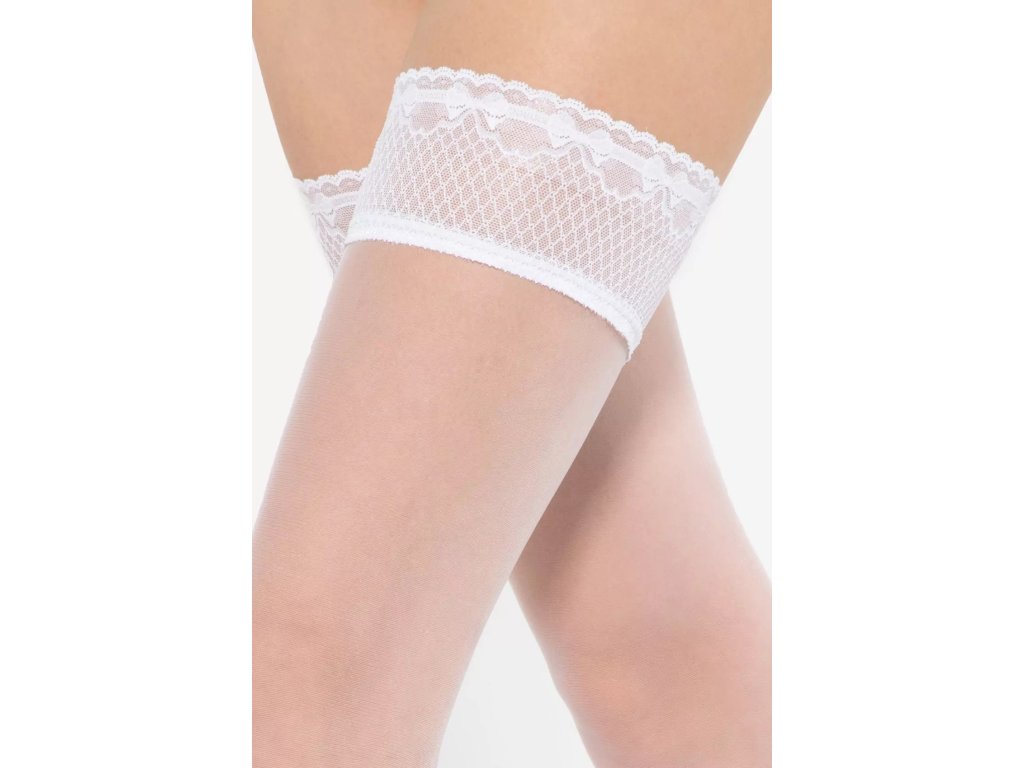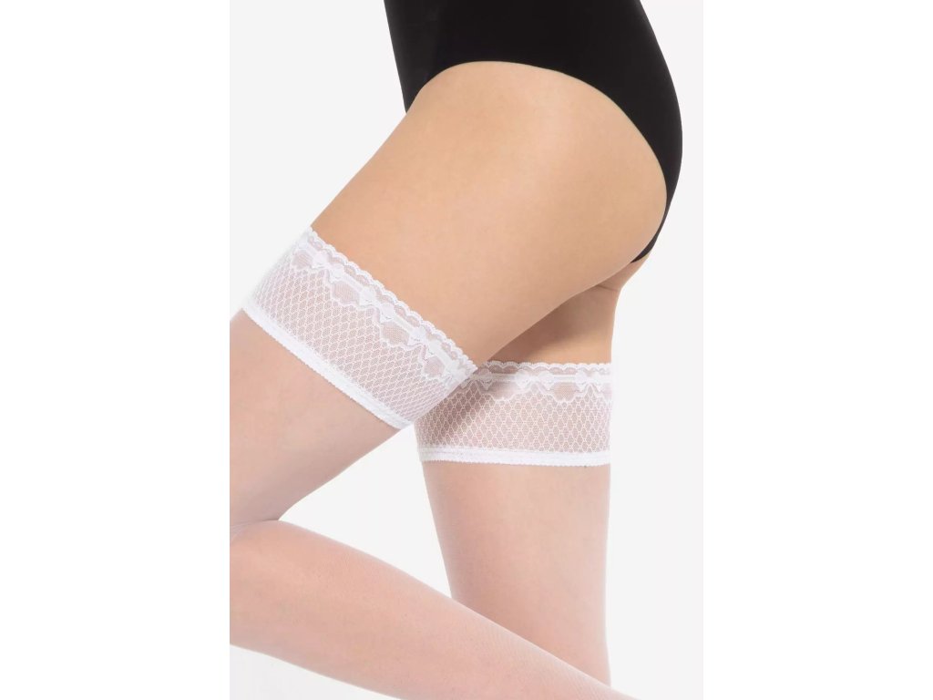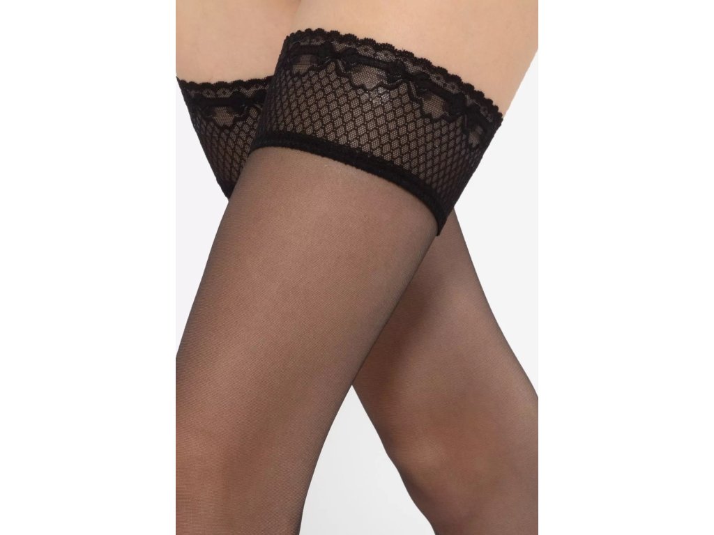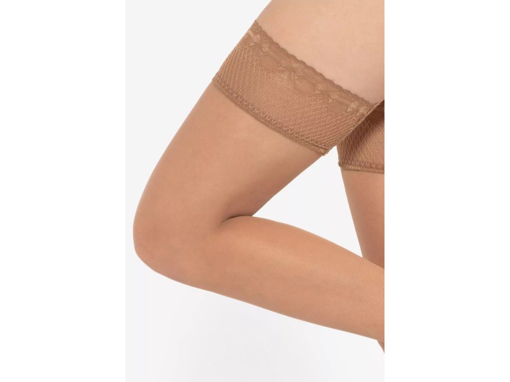 Samodržící punčochy Michelle 04 8 Den ● samodržící, klasické ● extrémně elastické, dokonale přiléhající k noze ● po celé délce se neobjevují žádné nepěkné záhyby ani rýhy ● doplněné silikonovými pásky, které udržují materiál na místě ● pásky jsou skryté pod jemným, ozdobným proužkem krajky, ozdobný proužek krajky ● ozdobný lem velmi smyslně obepíná oblast stehen ● během nošení nedochází k podráždění pokožky ani k nepříjemným pocitům ● opticky zeštíhluje tvar nohou ● bez vyznačené prstové části - vhodné do otevřené obuvi ● optimální tloušťka 8 denierů zajišťuje efekt lehkého zakrytí přirozeného odstínu pleti ● doplní jak business outfit, tak večerní šaty ● ideální pro letní dny