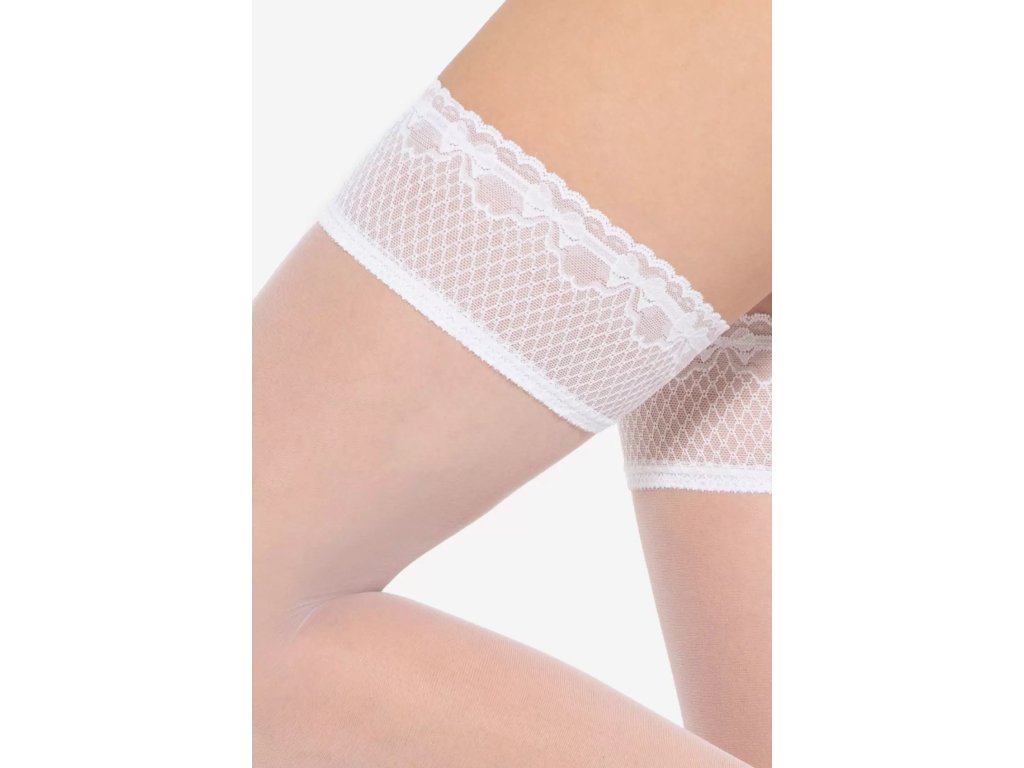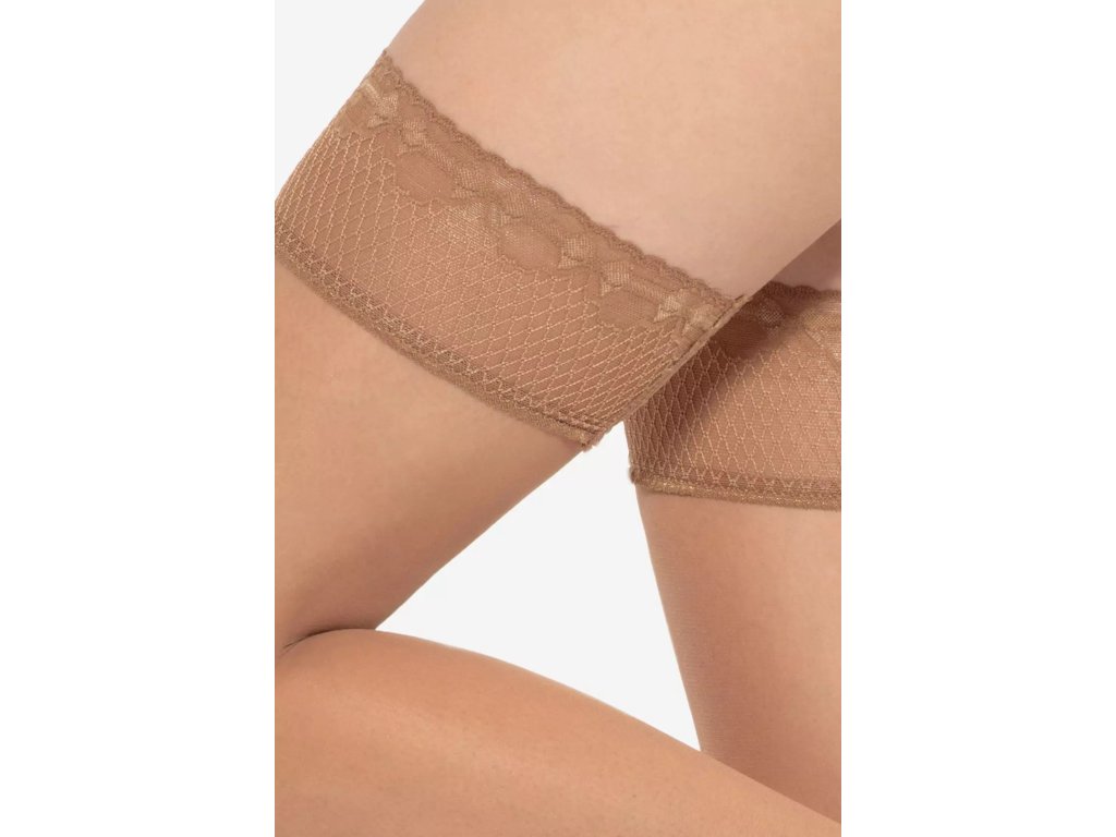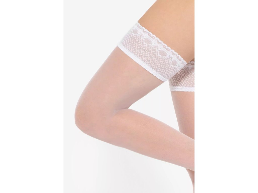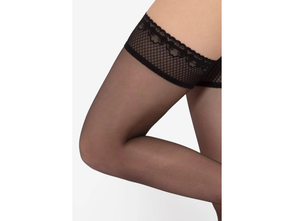 Samodržící punčochy Michelle 04 8 Den ● samodržící, klasické ● extrémně elastické, dokonale přiléhající k noze ● po celé délce se neobjevují žádné nepěkné záhyby ani rýhy ● doplněné silikonovými pásky, které udržují materiál na místě ● pásky jsou skryté pod jemným, ozdobným proužkem krajky, ozdobný proužek krajky ● ozdobný lem velmi smyslně obepíná oblast stehen ● během nošení nedochází k podráždění pokožky ani k nepříjemným pocitům ● opticky zeštíhluje tvar nohou ● bez vyznačené prstové části - vhodné do otevřené obuvi ● optimální tloušťka 8 denierů zajišťuje efekt lehkého zakrytí přirozeného odstínu pleti ● doplní jak business outfit, tak večerní šaty ● ideální pro letní dny