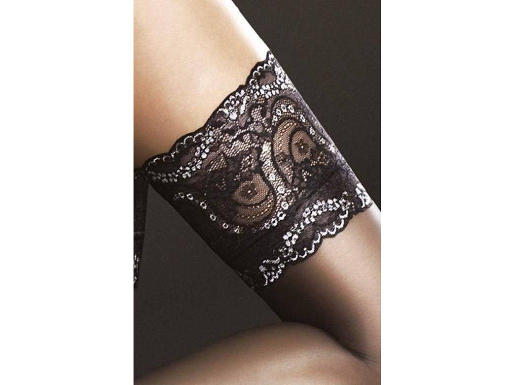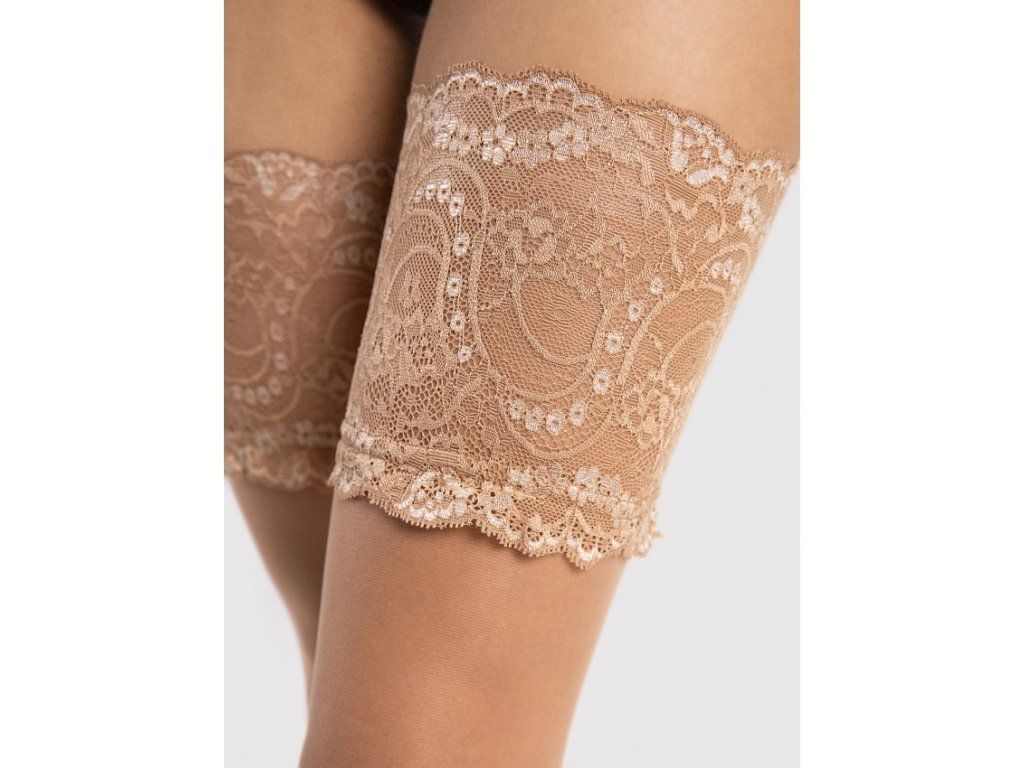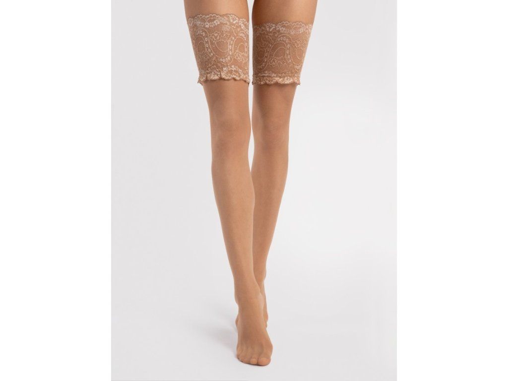 Sandrine 20 Den punčochy ● samodržící ● vyrobené pletenou technologií ● bez vyznačené oblasti prstů ● s efektní krajkou a dvojitým silikonovým proužkem ● z pletené příze pro větší pevnost, pohodlí a měkkost ● exkluzivní, smyslné, matné