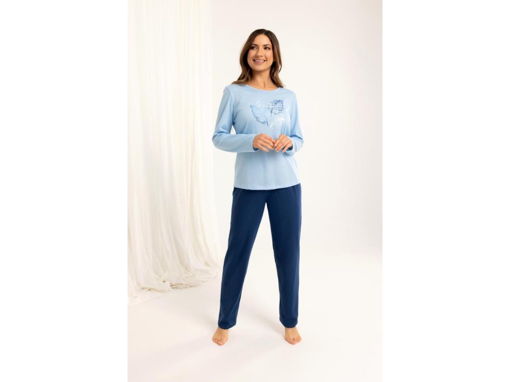 Dámské pyžamo vysoce kvalitní bavlněné tričko s dlouhým rukávem kulatý výstřih ve výšce hrudníku jemný potisk dlouhé kalhoty,