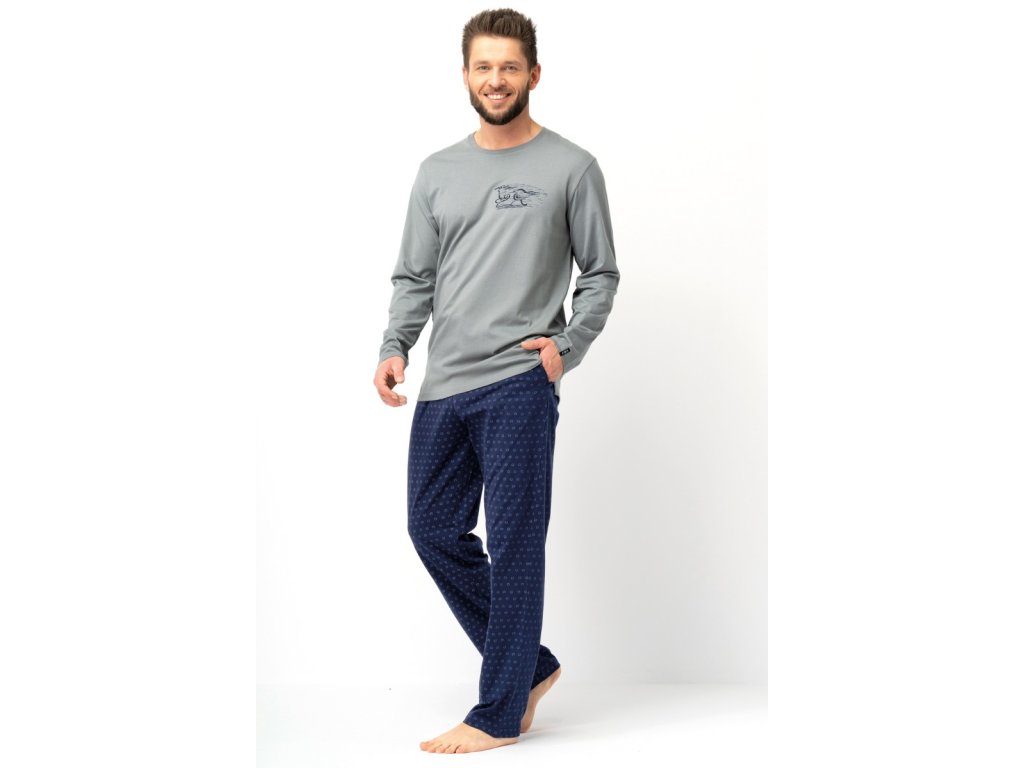 Pánské bavlněné pyžamo: mikina s dlouhým rukávem, kulatý výstřih, ozdobný potisk na přední straně, vzorované nohavice,
