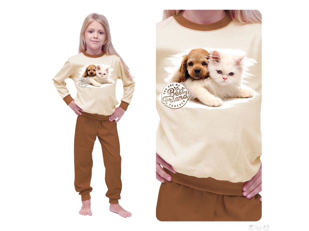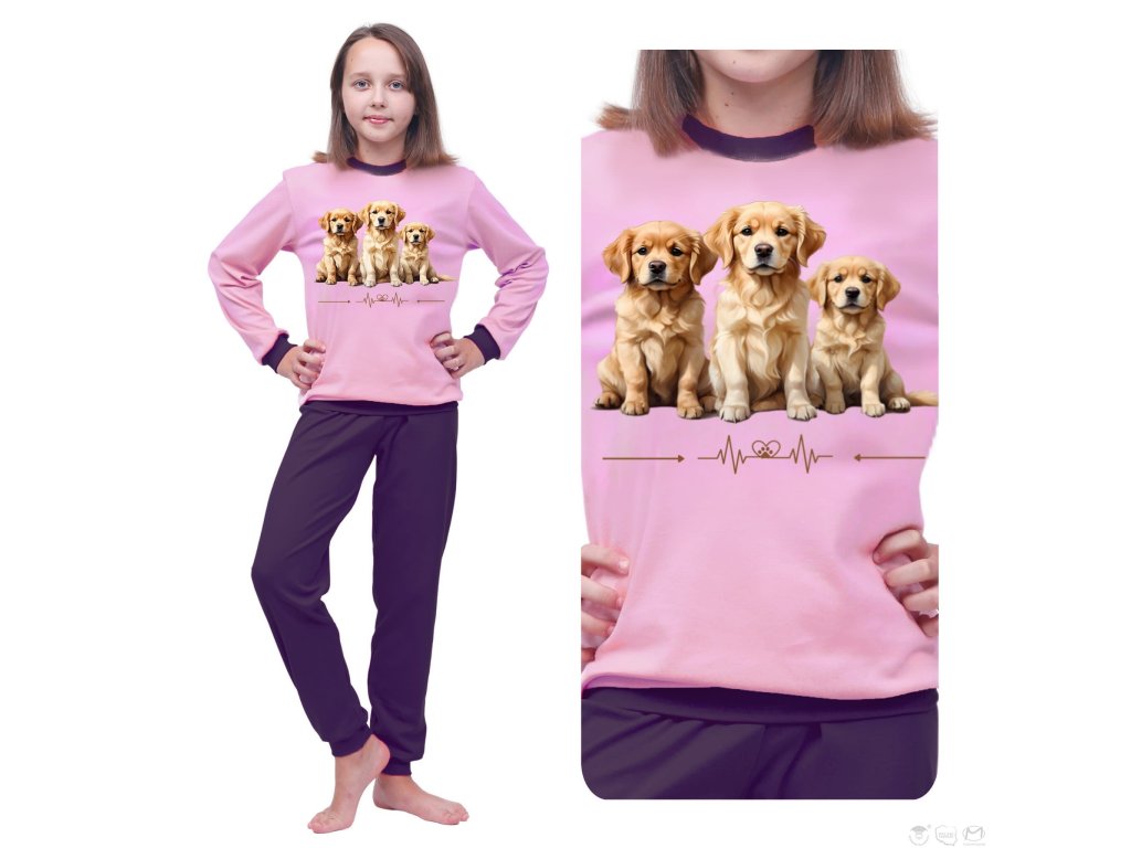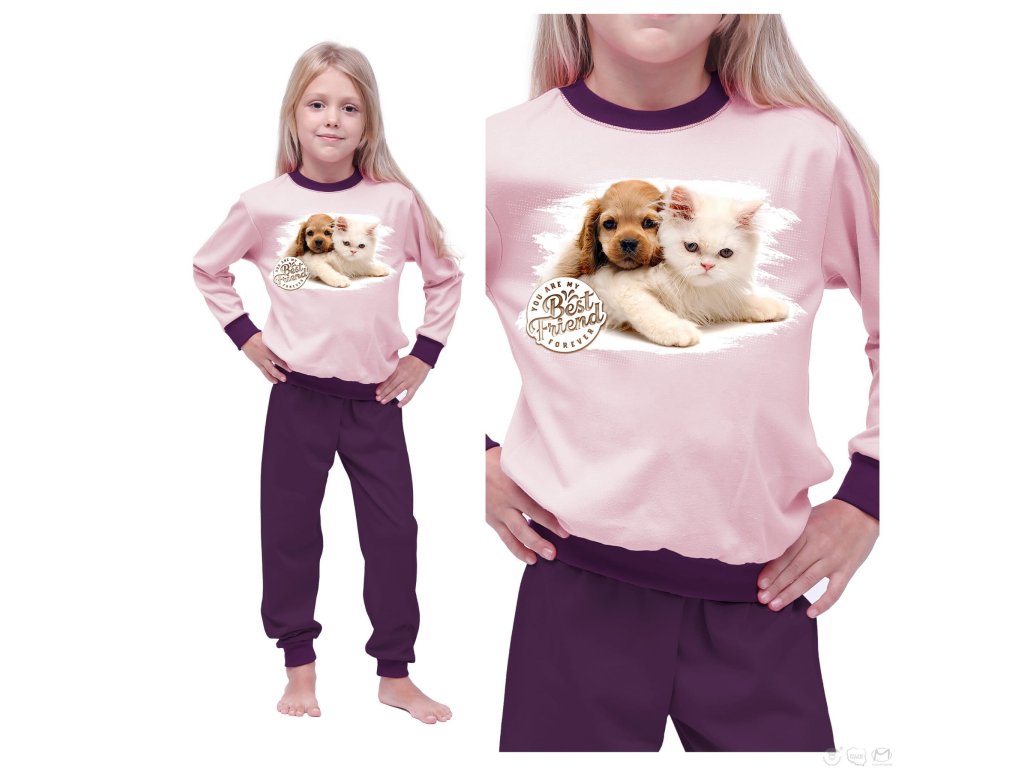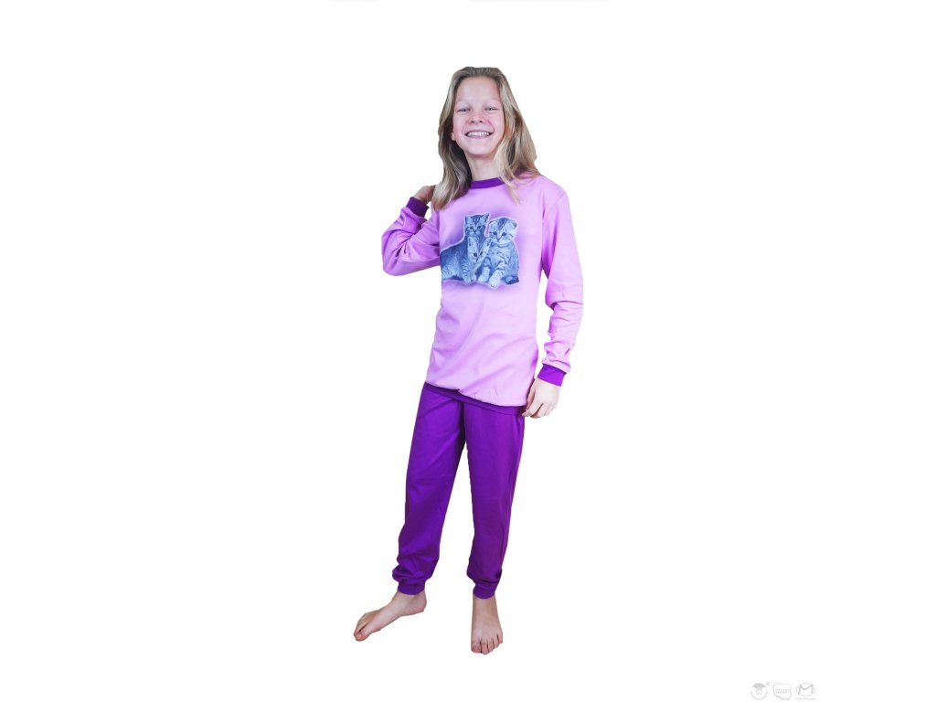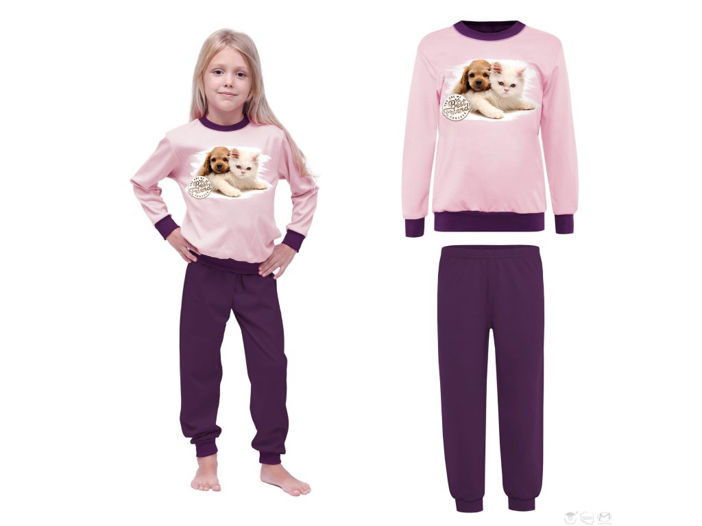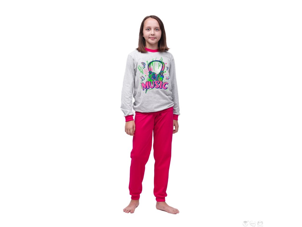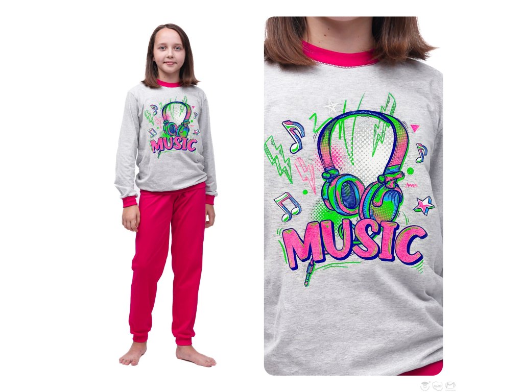 dívčí pyžamo s potiskem v módních barvách ● vyrobeno ze 100% bavlny ● příjemné a měkké na dotek ● lze prát a žehlit při vysoké teplotě ● látka je velmi odolná, nevytahuje se a nesráží ● lodičkový výstřih zakončený kontrastním žebrováním ● halenka se širokým žebrováním v pase ● široké elastické manžety na nohavicích a rukávech ● díky měkké bavlně na dotek pokožka dýchá a dívky se v noci nepotí ● certifikováno: Bezpečné pro děti