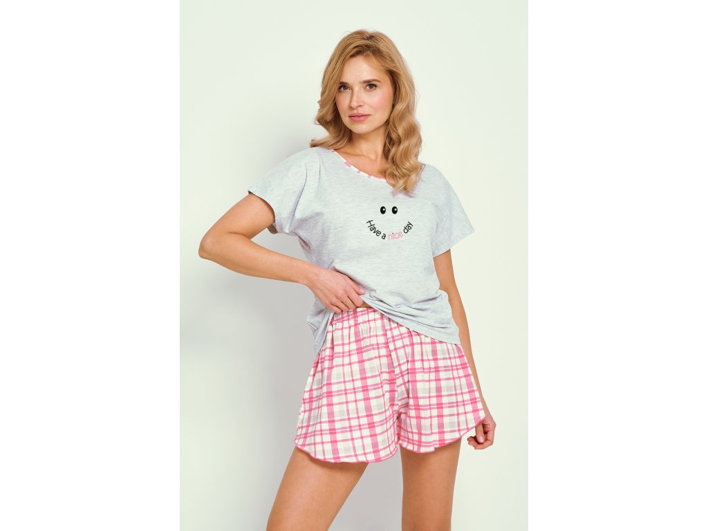 Pyžamo Matilda 3352 ● z vysoce kvalitní bavlny ● hladké tričko s krátkým rukávem ● zdobené veselým potiskem na přední straně ● půlkruhový výstřih s lemováním ● krátké kostkované šortky jako doplněk soupravy ● nohavice zakončené volánkem (lemování) ● volný střih pro větší pohodlí ● pohodlný elastický pas