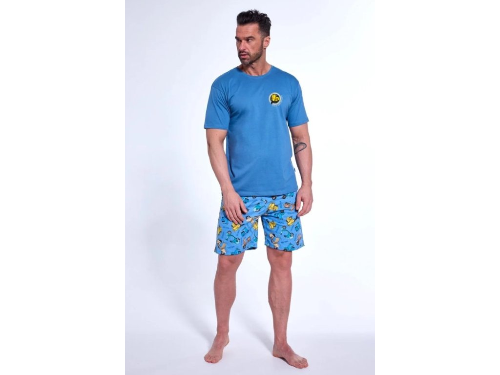 Pánské bavlněné pyžamo: tričko s krátkým rukávem, kulatým výstřihem, drobným potiskem,