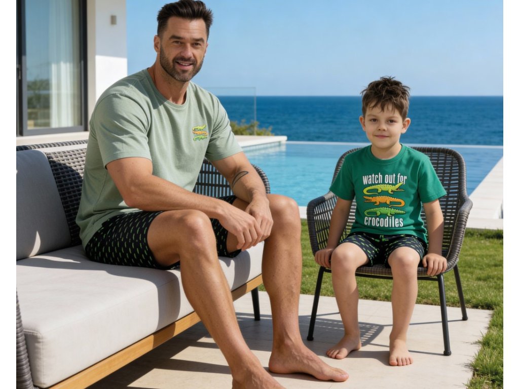 ● Krátké tmavě modré kraťasy s hustým potiskem krokodýla