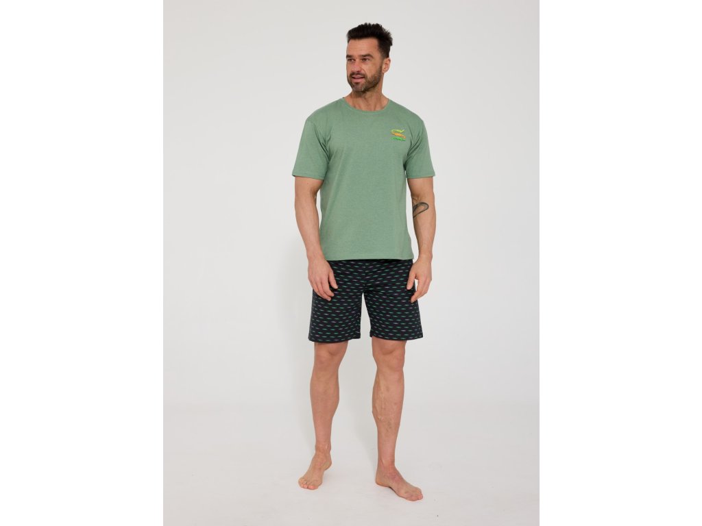 ● Zelené tričko s krátkým rukávem a kulatým výstřihem