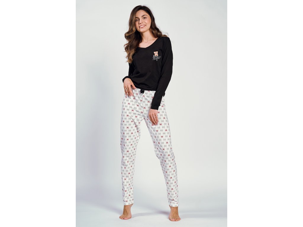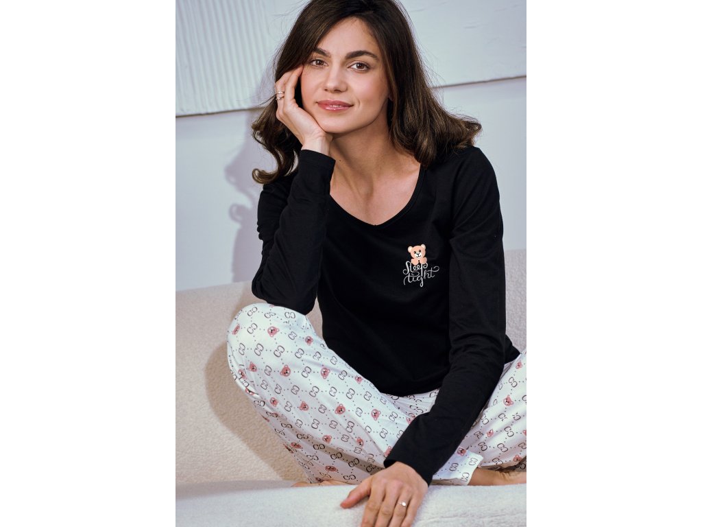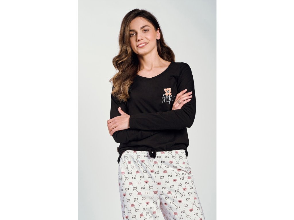 Pyžamo Polly 3231 ● z vysoce kvalitní bavlny ● tričko s jemným potiskem ● dlouhé rukávy, výstřih ● dlouhé vzorované kalhoty ● pohodlný elastický pás a mašle