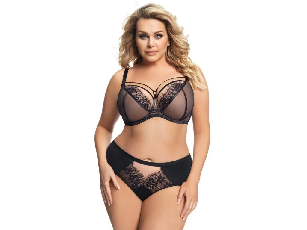 Podprsenka Paradise K496 Černá ● měkký typ, vyrobená z dvojitě složeného tylu ● určena pro ženy se středním, velkým a velmi velkým poprsím ● horní košíčky jsou vyrobeny z tylu a krásné, jemné krajky s řasami ● košíčky jsou zakončeny hladkou, úzkou gumičkou ● střed, těsně přiléhající k hrudní kosti, je zdoben mašličkou ● nad košíčky je ozdoba v podobě jemných ramínek (možné odepnout) ● košíčky jsou tvarovány drátkem obepínajícím prsa ● široké boky z pevného lycra úpletu ● navíc vybavena svislými kosticemi ve všech velikostech ● hladká, nastavitelná, neodepínatelná ramínka, různé šířky v závislosti na velikosti ● ramínka zdobená malou mašličkou v místě spojení s košíčky ● zapínání: háček, v závislosti na velikosti, dvouřadé nebo třířadé s 3stupňovým nastavením obvodu ● prsa jsou dokonale nabraná uprostřed, zvednutá a udržují si krásný, zaoblený tvar