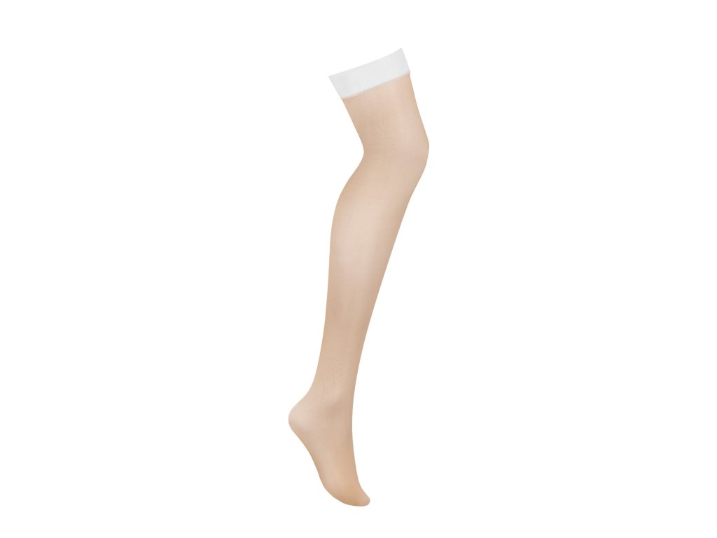 Ženské a elegantní punčochy z kolekce S814 jsou velmi sexy doplňkem, který fantasticky zvýrazní nohy. Bílý hladký povrch krásně zdobí stehna a dodává jim eleganci, zatímco béžová síťovina dokonale sedí na těle. V kombinaci s odpovídajícím podvazkovým pásem vytvoříte sexy vzhled, který se hodí do ložnice i na každodenní nošení. Zjistěte více: síťovina v béžové barvě - úžasně zvýrazňuje nohy, vsadka z hladkého materiálu v bílé barvě - zdobí stehna a upoutá pozornost