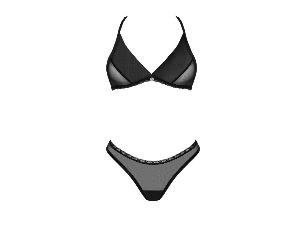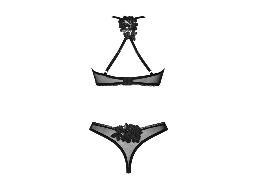 Dvoudílná souprava Latinesa ● skládá se z podprsenky a tang ● vícepolohové zapínání a nastavitelná ramínka - perfektně padnou ● lesklý přívěsek - zajímavý detail ● květinové akcenty - zajímavý design ● průhledný materiál - jemný a příjemný na dotek