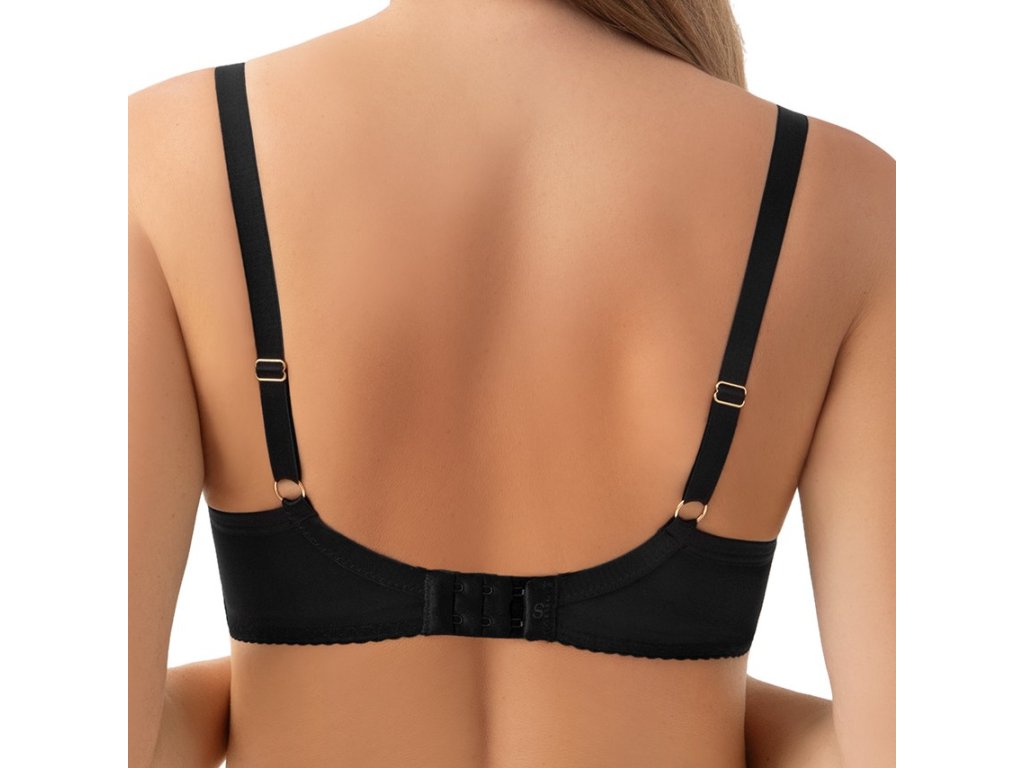 Soft Vida Bra K964 Black ● konstrukce K 964 ● měkká, určená pro ženy se středním, velkým a velmi velkým poprsím ● poskytuje velmi silný zvedací efekt a shromažďuje poprsí dovnitř ● třídílné košíčky z výšivky podšité stabilním tylem ● horní okraj košíčku plynule přechází na ramínko, což způsobuje lepší podporu poprsí ● ozdobná, odnímatelná, ozdobná, odnímatelná, nastavitelná ramínka s ozdobným prvkem ● zadní část z elastické lycry pro velmi dobré přizpůsobení a podporu ● boční velrybí kostice zabraňující prověšení ● v závislosti na velikosti dvou- nebo třípolohové zapínání na háčky s podšívkou z mikrovlákna ● třípolohová nastavitelná ramínka ● neodnímatelná, nastavitelná ramínka ve třech šířkách ● prvky z lehkého zlatého kovu (neobsahují nikl) ● navrženo pro výjimečné pohodlí a vynikající podporu poprsí ● ideální pro každodenní nošení i náročné styly ● zajišťuje pohodlné nošení a dlouhou životnost