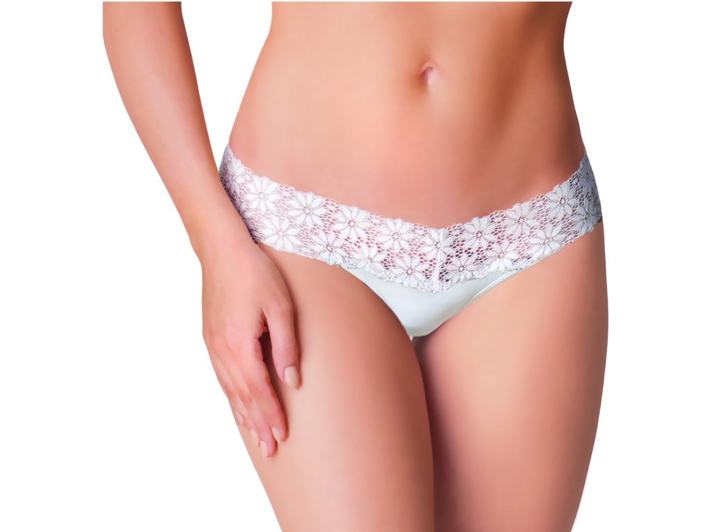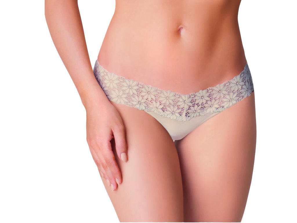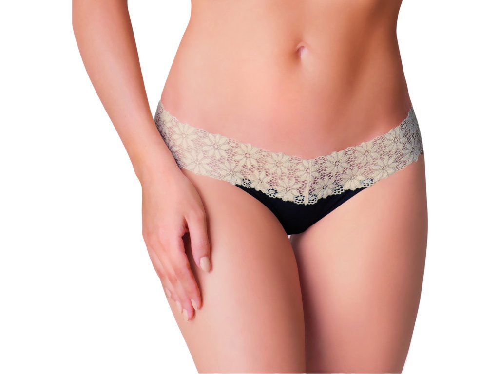 Tanga 042 ● jemná, dobře padnoucí ● mají krásnou krajku se zlatou nití, umístěnou v pase ● hladká na zádech ● vyrobená z měkkého mikrovlákna