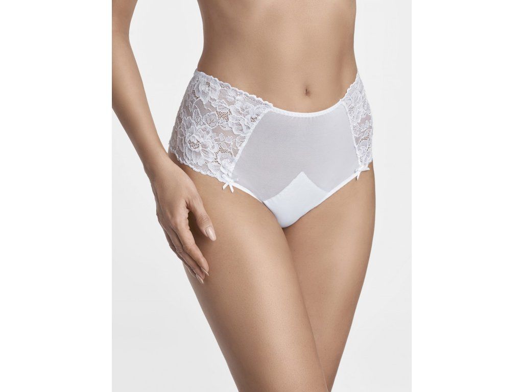Tanga 079 ● šortky s vysokým pasem ušité z krásné krajky ● dokonale padnoucí, ideální pod šaty ● vysoký pas, plný střih, krásně leží na zadečku a bocích ● pásek v rozkroku je vyroben z neprůhledného mikrovlákna