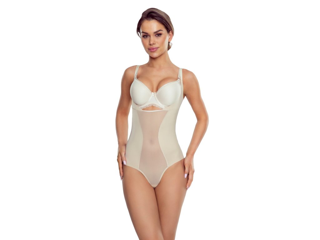 Viliama Plus body ● smyslné, tvarující s výřezem pod prsy, ideální pod podprsenky ● laserové střihy eliminují švy - bezešvá technika šití laserovým střihem ● zůstává neviditelná i pod velmi vypasovanými oděvy ● tvarující síťovina na bříšku ● výřez pod prsy - možnost nošení vlastní podprsenky ● nastavitelná ramínka pro dokonalé přizpůsobení ● hluboký výstřih na zádech ● zapínání na háčky a smyčky pro snadné oblékání ● kombinace sexy designu a tvarující funkčnosti