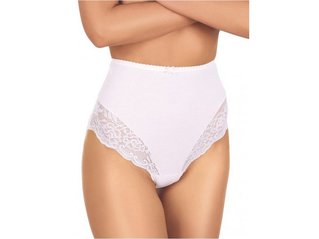 Kalhotky Tessa ● dámské bavlněné ● s vysokou linií pasu ● se zesílenými boky ● vpředu s okouzlujícími krajkovými vsadkami ● linie pasu zakončená elegantní stuhou zdobenou mašlí ● vzadu hladké, jednotné ● kalhotky dostupné ve 3 barevných provedeních: bílé, béžové a černé
