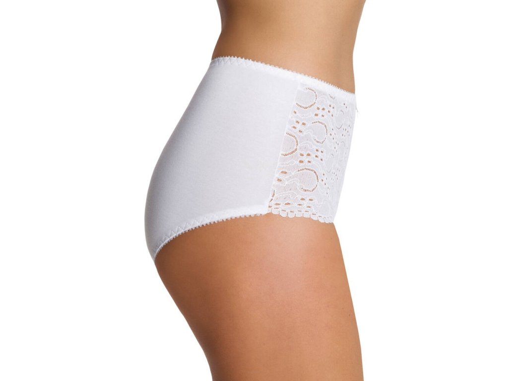 Kalhotky Ulla ● elegantní, vestavěné, vysoké ● zadní část je vyrobena z bavlny s elastanem ● přední část je vyrobena z elastické, mírně stahující krajky ● zdobené originálním vzorem ● ideální pro každý den ● baleno v krabičce