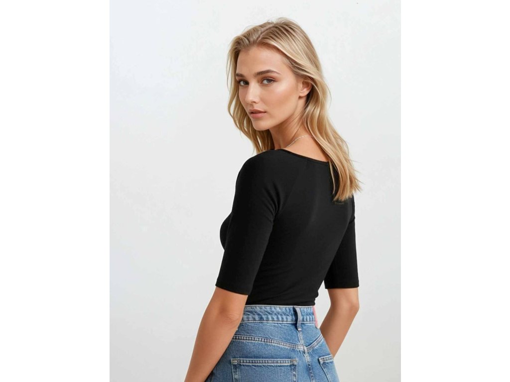 Halenka Uma ● vyniká širokým geometrickým výstřihem (ve stylu kosočtverce/čtverce) ● krásně odhaluje klíční kosti a prodlužuje krk pro elegantní vzhled ● je vyrobena z bavlny s elastanem ● zaručuje vynikající prodyšnost a měkkost ● má rukávy v délce po lokty (cca 37-38 cm) ● rukávy zakrývají ramena pro pohodlí a profesionální vzhled v kanceláři ● pěkně přiléhá k postavě a zdůrazňuje ženské křivky