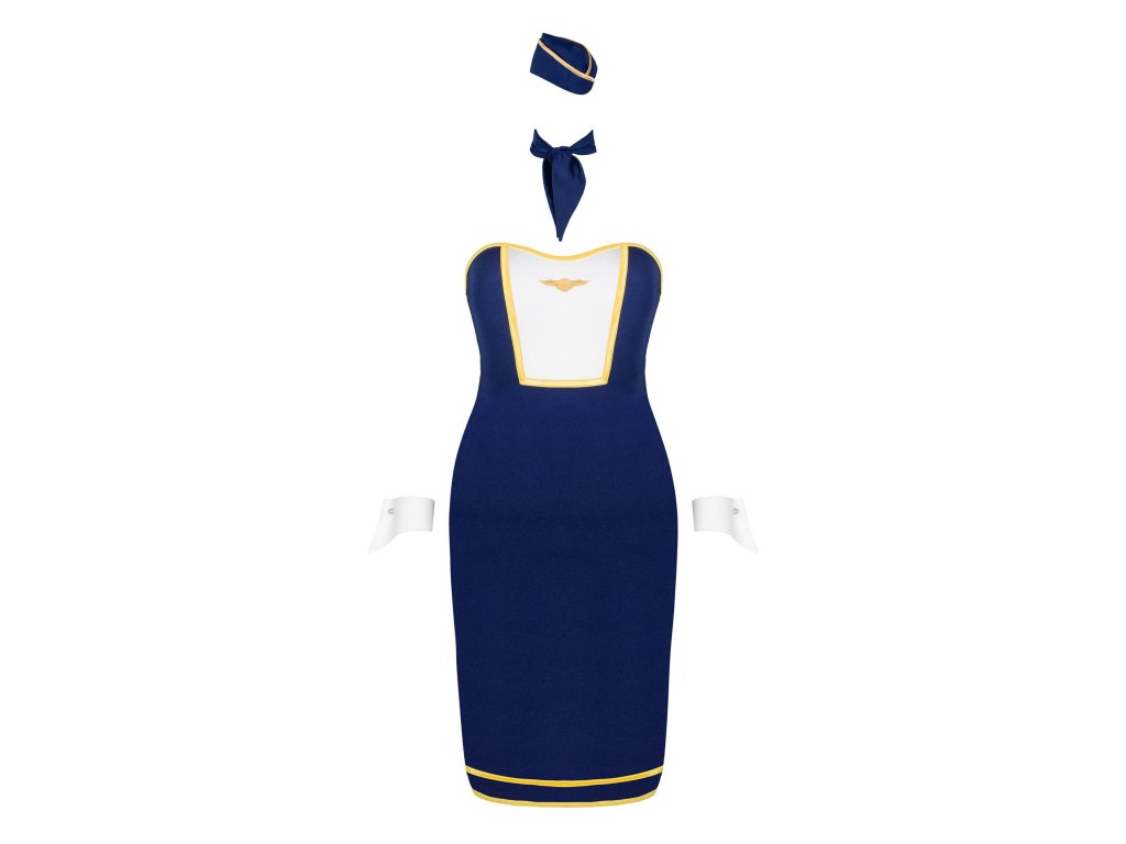 Uniforma letušky ● lákavý kostým ● sada obsahuje: čepici, šátek, manžety a ženské šaty ● zlaté lemování - dodává eleganci ● manžety s pohodlným zapínáním ● pohodlné a pohodlné nošení ● elastická a měkká tkanina