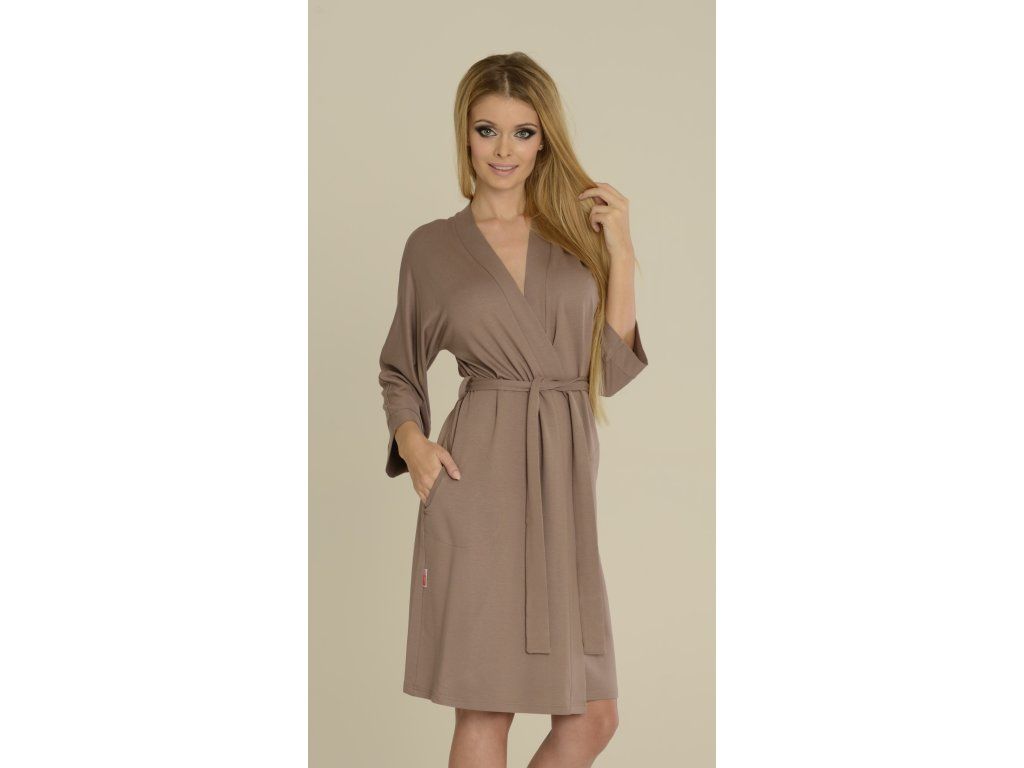 Župan Visa 544 ● z vysoce kvalitní viskózy s elastanem ● krátký, v délce ke kolenům ● zavazování v pase ● 7/8 dlouhé rukávy ● kapsy na bocích ● ideální komplet s tričkem nebo pyžamem z kolekce Visa