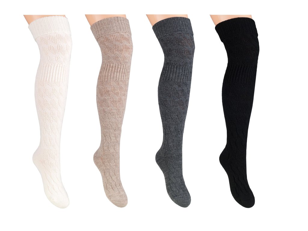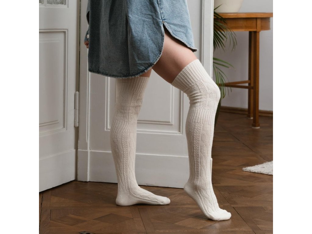 Vlněné ponožky 089 ● teplé, vlněné ● originální stylový prvek ● výrazná, hustá vazba ● díky dodatečnému žebrování pod koleny perfektně drží na nohou ● výrobek z vysoce kvalitní vlny ● nabízené v různých barevných variantách ● ideální pro podzimní a zimní sezónu
