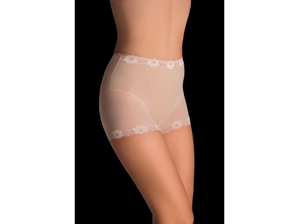 Kalhotky Lara ● silně korigující břicho ● z měkkého elastického mikrovlákna ● mají speciální vložky - výztuhy, které zplošťují břicho ● nohavičky z jemného tylu zdobeného krajkou