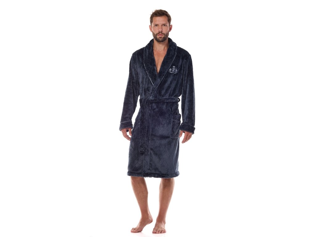 Pánský župan s šálovým límcem. Měkký a pohodlný úplet s reliéfním vzorem. Zavazování v pase.